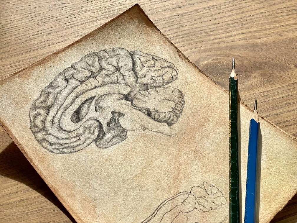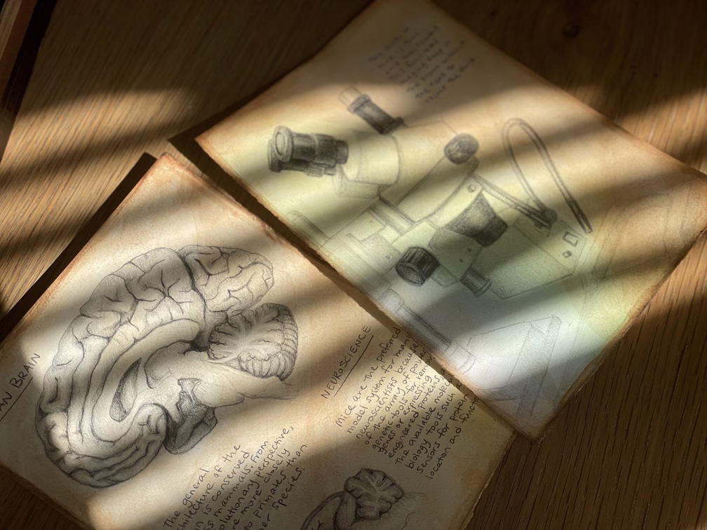 The project developed through collaboration between artistic practice and neuroscience research focused on neuroplasticity. Scientific concepts informed the structure and sequencing of the drawings, while sketching and annotation techniques echoed the working format of research documentation. The process emphasized translation, allowing complex data and mechanisms to be approached through visual layering, repetition, and form.