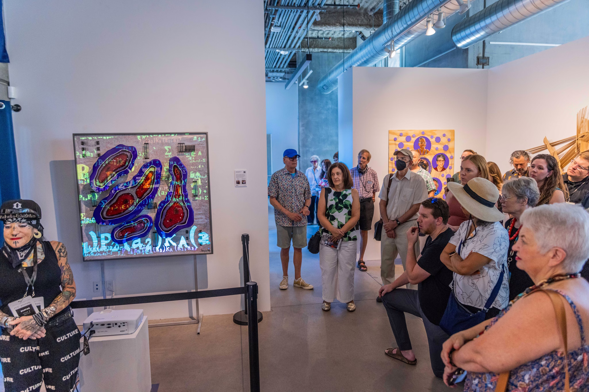 The project emerged through collaboration between artistic practice and mathematical cancer research. Conversations around mutation detection, modeling, and laboratory processes informed the conceptual structure of the piece. Material choices such as aluminum, automotive paint, and projection were selected to reflect precision, industry, and analysis. The integration of flow cells and animated data highlights the translation of scientific tools into visual form, emphasizing process, interpretation, and shared inquiry.