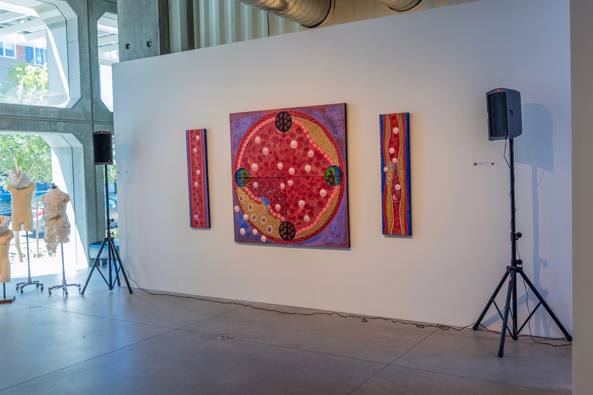 The project developed through direct collaboration between artistic practice and cerebrovascular research. Studio work was informed by laboratory visits, microscopy observation, and ongoing dialogue around arterial structure and cellular behavior. The process emphasized translating complex biological processes into visual form, using scale, repetition, and radial patterning to reflect both scientific structure and experiential understanding. Collaboration remained central throughout, allowing research insights and artistic interpretation to inform each stage of development.